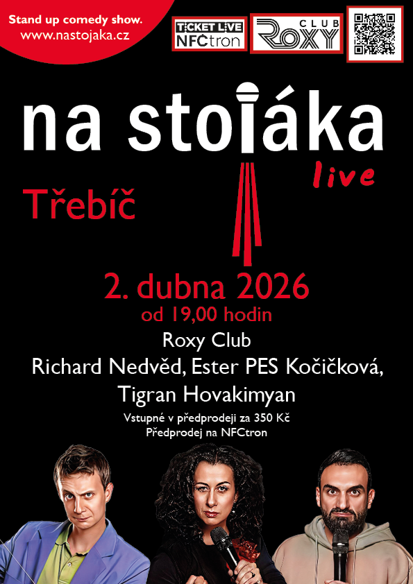 Ester PES Kočičková, Tigran Hovakimyan a Ríša Nedvěd - jako cože? Do Třebíče takhle nadupaná sestava? Ano.