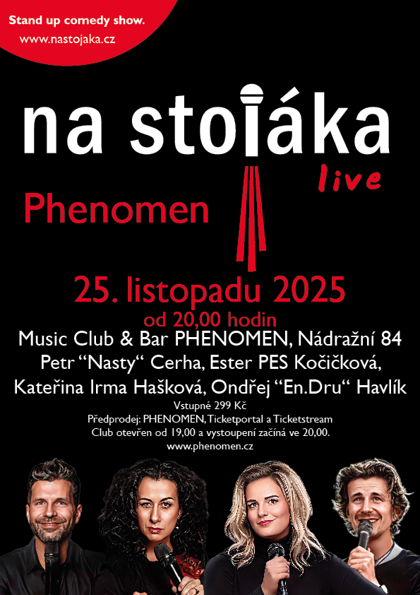 Roudnickej stoják je unikátní, dva bary na jednom místě a na obou místech současně vystoupení na Stojáka - říkáme tomu přebíhačka. Přijďte to zažít. Tentokrát Karel Hynek, Petr vydra a Tigran Hovakimyan.